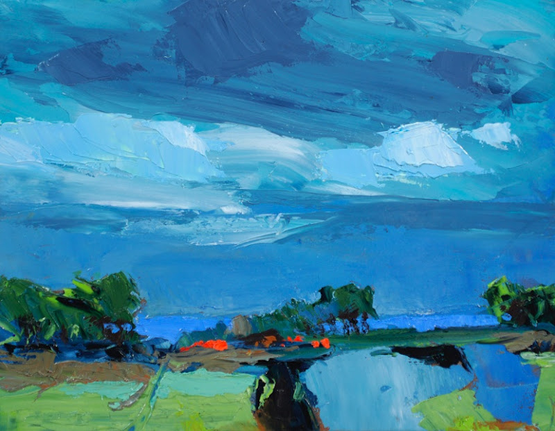 Painting from an emotionally imbued memory of place, sometimes using photographs as aids, his work is about displacement and belonging. His work is in effect a remembrance of an event that in retrospect seems more relevant. Sometimes seen through rose tinted glasses, other times through a haunted eye. There is a poignant realization (in the true sense of the word) of memory, a distilling process that has already succumbed to time and distance. His work is a disjointed conversation with time and place, but after the fact, in an attempt to find a space in which to belong." ( galerie sandra goldie)