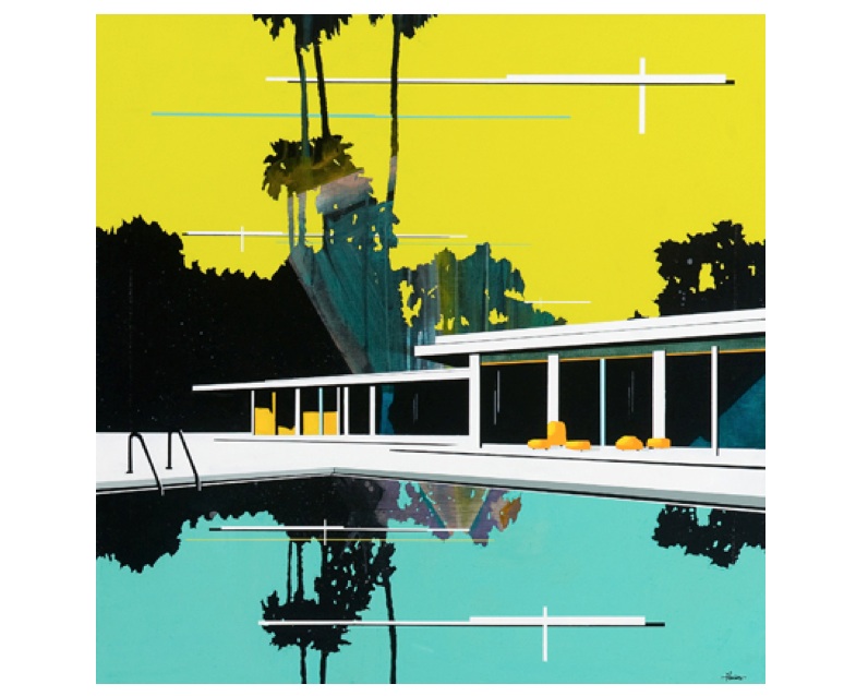 "The focus of my recent work is predominantly based on the relationship between the built and non-built environment. My interest in this subject began during school and was prompted by a painting my parents owned by Jeffrey Smart, titled “Man with bouquet” 1982. At this time, my parents also introduced me to the photography of Ansel Adams and the combination of these two influences manifested in the work I produced while taking art classes whilst under the supervision of Central Coast landscape artist, Kel Connell. Connell taught me the basics of landscape painting and omitted the human form from all work, instead focusing on built forms to provide the subject. Connell’s training, together with more recent exposure to Australian Street Artists and Graffiti Writers (introduced through my involvement with the China Heights collective, Surry Hills) and my study at COFA, have merged to form the multidisciplinary practice I use today. My practice primarily involves photography, stenciling, and acrylic painting, with which my first experiments began in 2002. These works depicted Sydney street scenes mixed with researched popular culture images. The layering process of this technique created on the canvas a visual diary of my immediate surroundings." (READ MORE HERE)