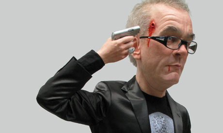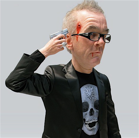 It is Damien Hirst with a bloody hole in his head – the richest bad boy of British art finally turned into a piece of half-pickled art himself.